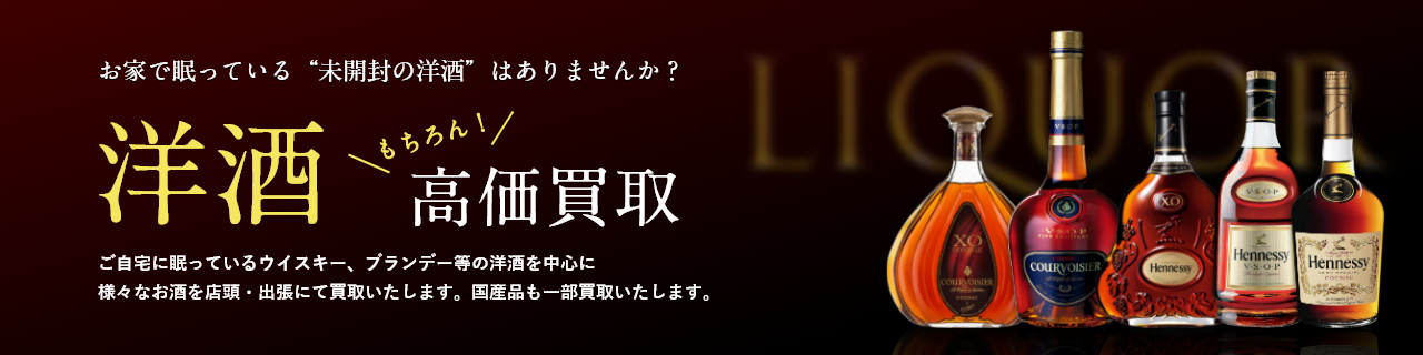 ご自宅に眠っているウイスキー、ブランデー等の洋酒を中心に様々なお酒を店頭・出張にて買取いたします。国産品も一部買取いたします。